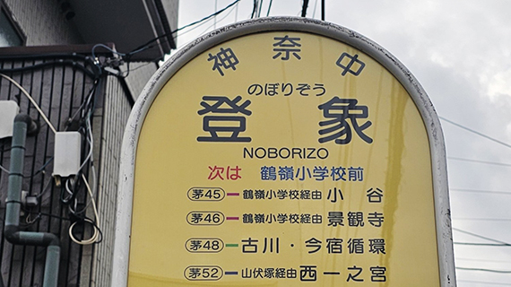 茅ヶ崎市に「登象(のぼりぞう)」というユニークな名前のバス停があるというので行ってみた。JR東海道本線茅ヶ崎駅から寒川駅南口行きバスに乗って5つ目のバス停が登象バス停である。住所でいうと茅ヶ崎市矢畑。