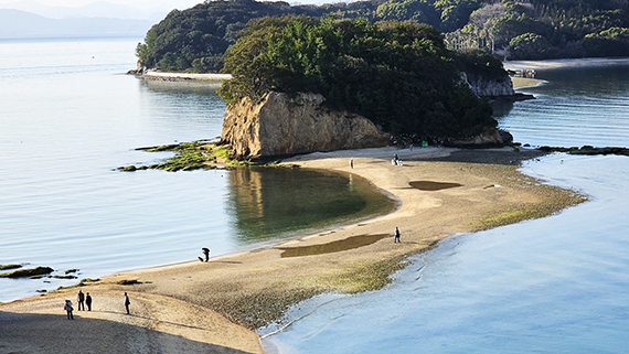トンボロは西伊豆の堂ヶ島が有名で、ここでは1日に干潮の1時間ほど沖の三四郎島まで200mほどの道が現れる。実は現在は橋でつながっている江ノ島でも、大潮の時にだけ橋の下の砂洲が対岸の江ノ島にまで伸び歩いて渡ることができる。これに対して、小豆島のエンジェルロードはつながっている時間が長い。1日2回、各3時間ほど前島までの砂の道が現れるため、観光客としてはありがたい。ただ、最も潮の引いてる時だとしっかりとした砂浜のように幅広く陸上化してしまう。
