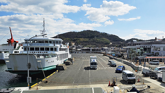 翌日、小豆島からフェリーで隣の豊島に。わずか20分で唐渡港に着く。ここは豊島美術館が有名で、フェリーも島もインバウンドの欧米人だらけ。